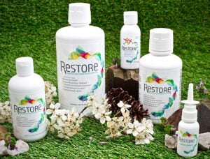 RESTORE is designed to balance gut health, support respiratory wellness, combat environmental exposures, promote immune function, enhance mental clarity, and promote hydration.